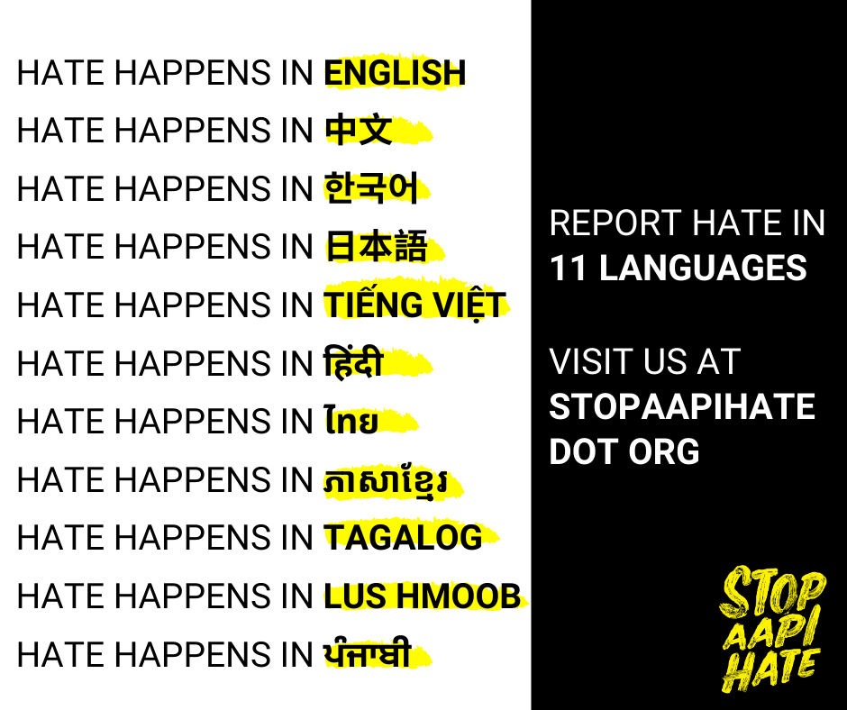 You can learn more at StopAAPIHate.org, sign this petition asking mainstream media to cover this issue more broadly, and learn how to disrupt racism in real-time by learning bystander intervention at ihollaback.org.