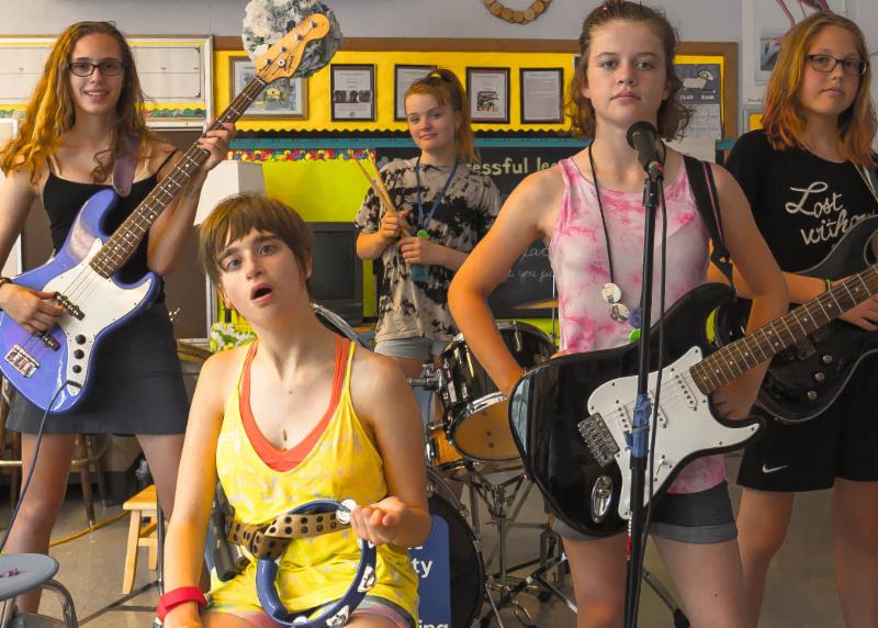 Rock ’n’ Roll Camp for Girls (RNRC4G) is a 501(c)3 non-profit that amplifies the voices of campers aged 9–17 as they form bands, learn an instrument, write an original song, and perform together live before an audience of their families, friends, and peers. We provide a fun, fearless, and supportive environment for girls who are cis-female, transgender (regardless of identity), and gender non-binary to explore music, art, and creative self-expression. Our programs of empowerment cultivate youth leadership, encourage the pursuit of positive social change, and contribute to the vitality of our communities.