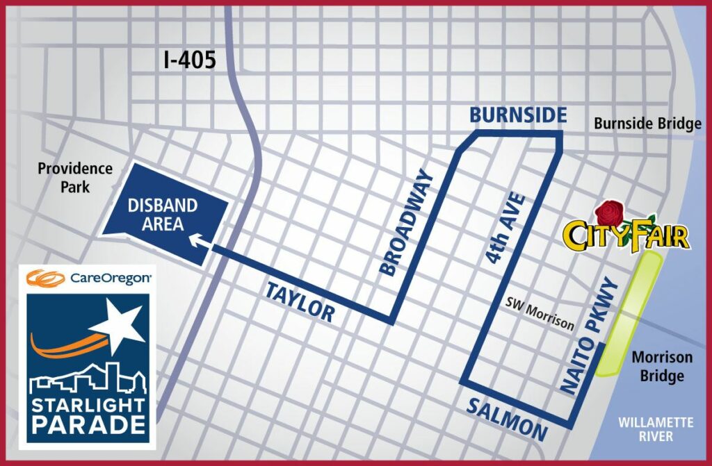The Starlight Parade travels through downtown Portland and ends at Lincoln High School. Join us along the route for an unforgettable evening of illuminated entertainment. For the best viewing experience, we recommend arriving early to secure a prime spot. Check out the Route Map below and find your favorite location!