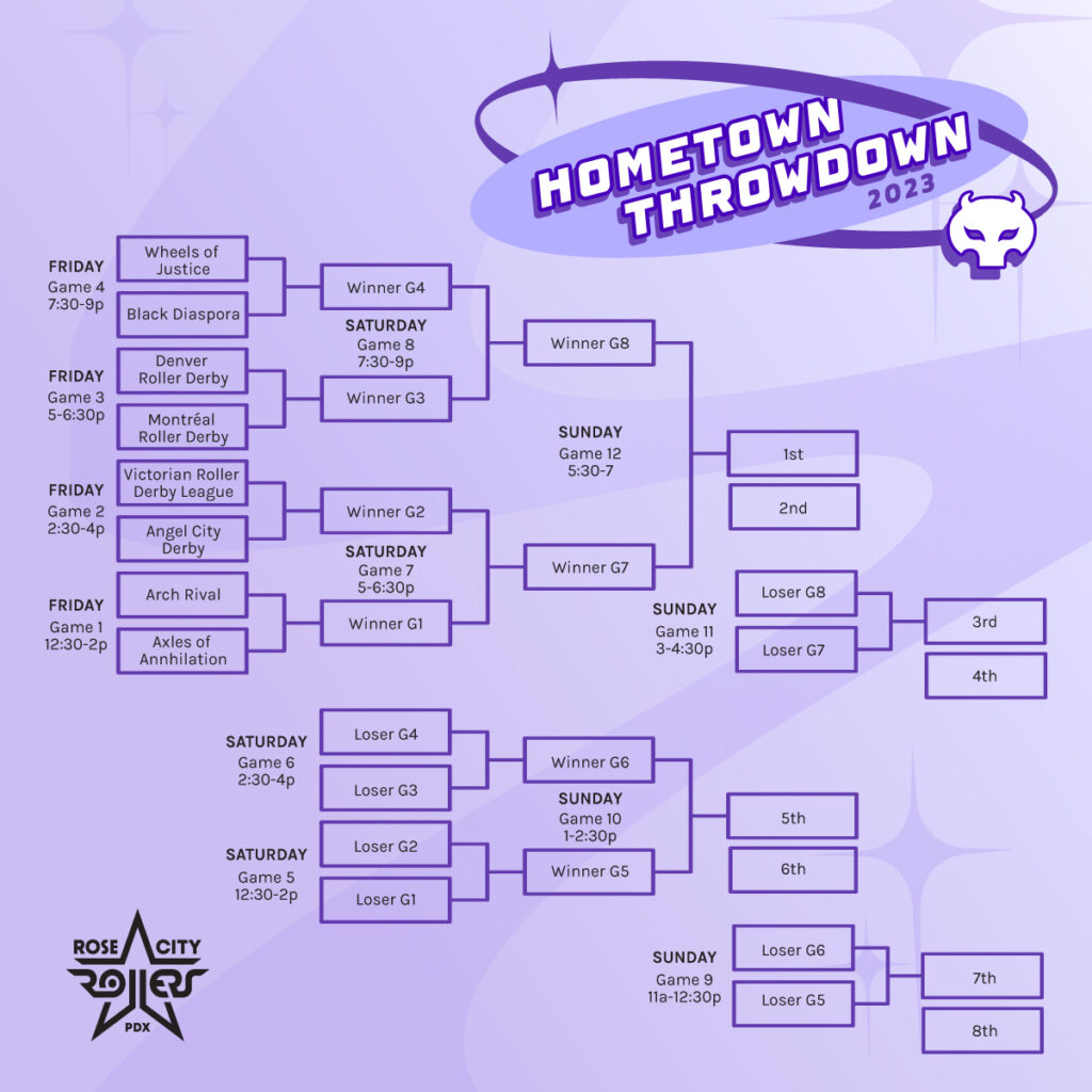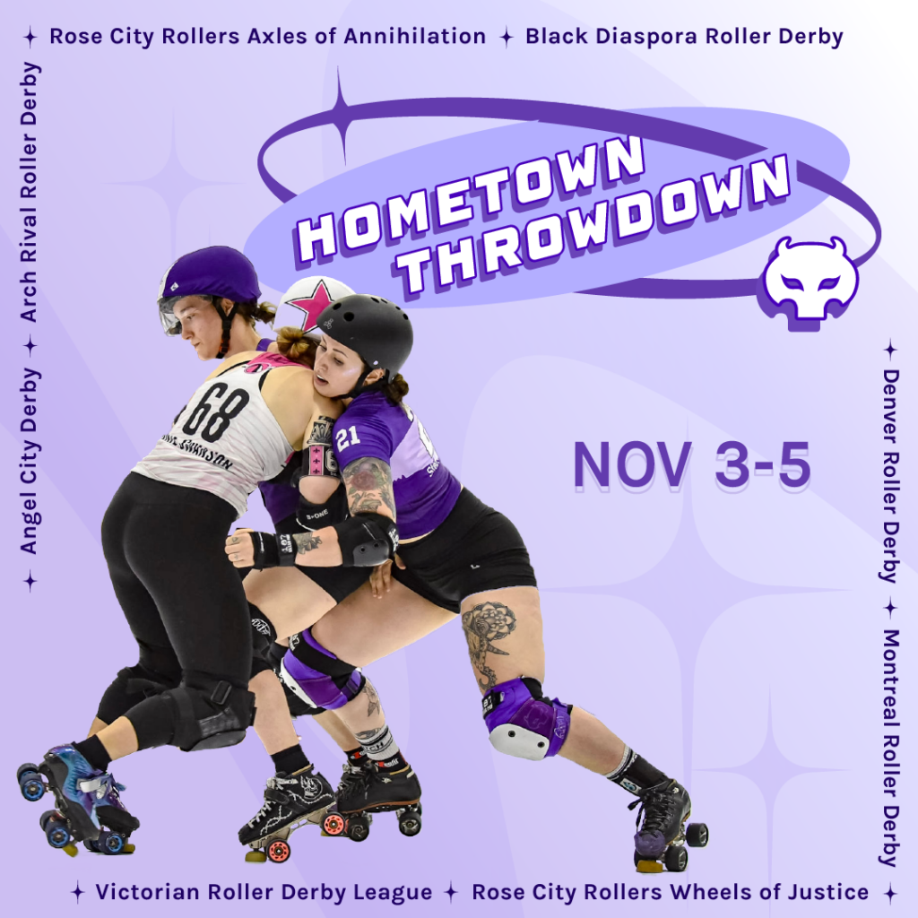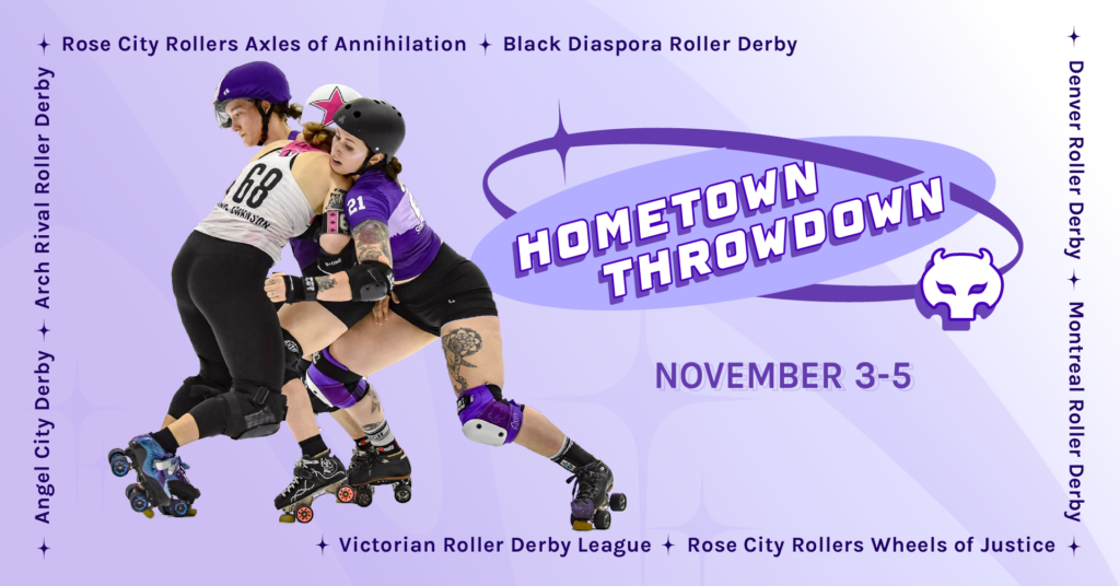 PORTLAND, OREGON, OCTOBER 23, 2023 – Rose City Rollers (RCR) are gearing up to host a high-level showcase of international roller derby at their annual Hometown Throwdown tournament from November 3rd to 5th. Eight top-tier roller derby teams from around the globe will head to Portland for a weekend of intense competition. The Hangar at Oaks Park will be the battleground for this international roller derby extravaganza.